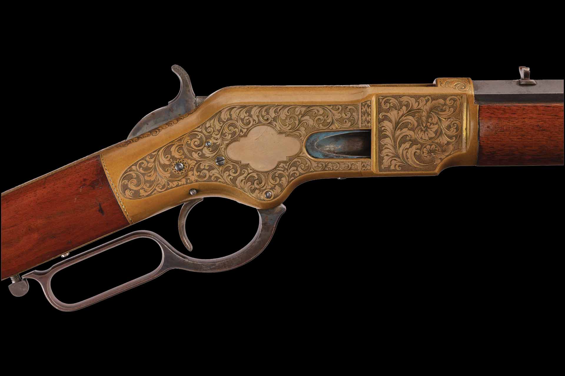 Mechanically, the rifle is excellent, ensuring it is not only a stunning display piece but a fully functional historic firearm. As one of the most iconic Nimschke-engraved Winchesters, this Model 1866 is essential for any serious Winchester or firearms art collector. It makes a grand statement in any collection—public or private—and stands as an outstanding example of 19th-century American patriotic artistry by the master engraver himself.