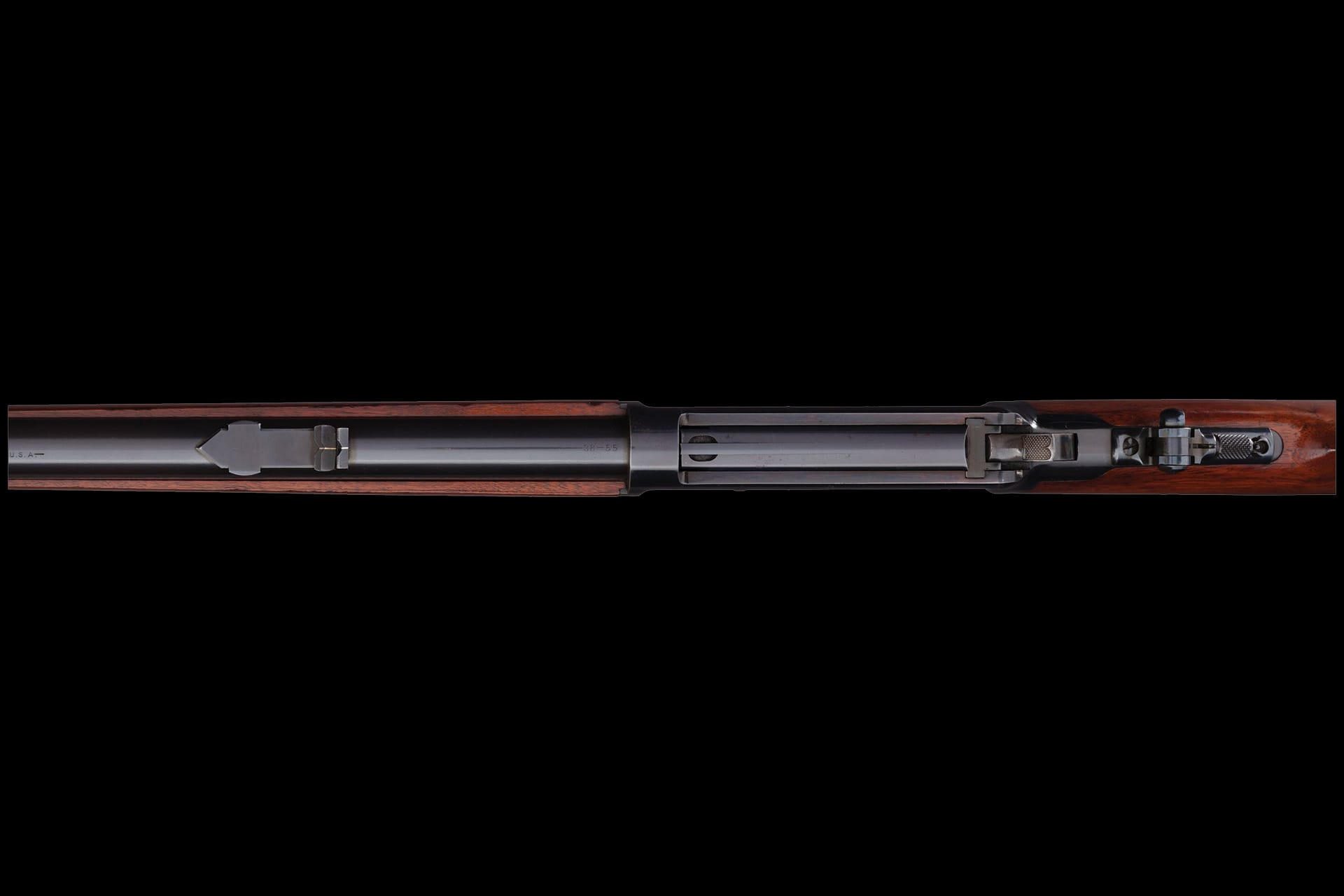 Notably, early 1894s like this were seen as utility guns and often subjected to hard use—making high-condition, standard configuration examples such as this exceedingly rare. More than 7.5 million Model 1894s were produced, yet only about a quarter of those prior to serial number 353,999 were chambered in .38-55. This rifle retains excellent condition, with smooth wood and crescent buttplate, and all period-correct features.